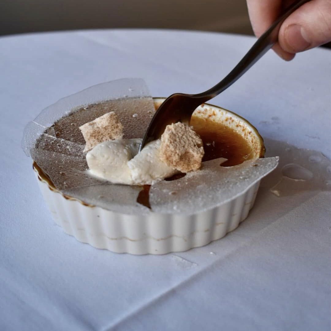 The room is warm, modern, and confident: a palette of browns, whites, and copper softened by brick and the steady flicker of candles. Nothing shouts, nothing overwhelms. Instead, the dining room feels tuned—like a canvas set just right. From our booth, polished and perfectly kept, we had the ideal vantage point to watch the evening unfold around us, as if we belonged. The atmosphere was happy and calm, the sort of balance that makes conversation effortless and time unhurried.