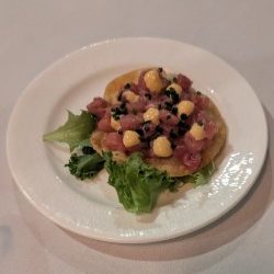 The prix fixe menu was an easy decision. My arancini arrived golden and crisp, the center rich with molten cheese. Rested on a basil-pesto aioli so smooth and full of flavor that you imagine making at home, but know, deep down, you’ll never match. Beside me, my friend’s tuna was thick, rich, and unapologetic, earning its title as the “steak of the sea.”
